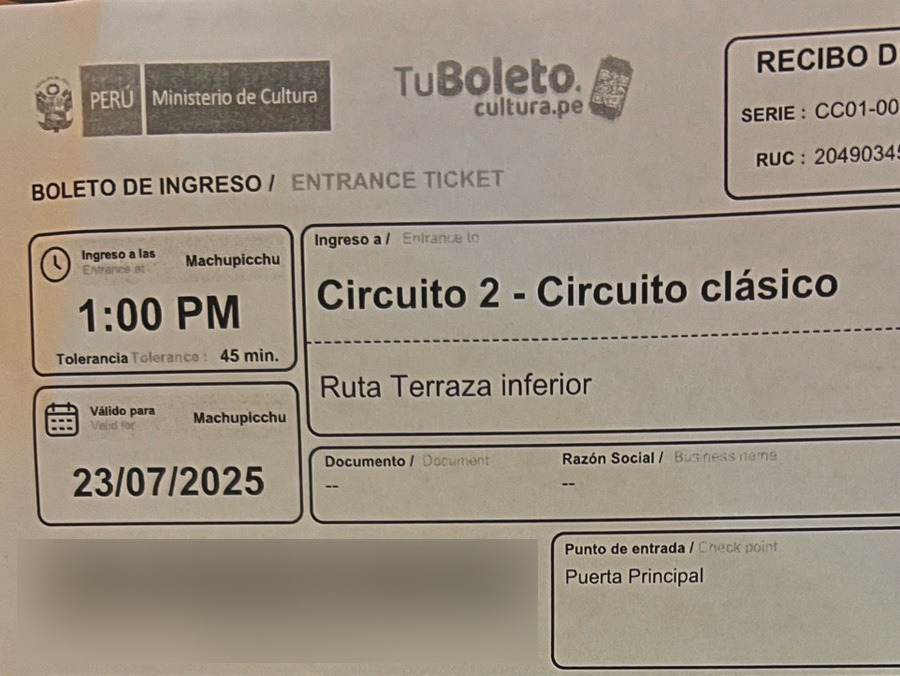 입장권을 받으면, 마추픽추 왕복 셔틀 버스와 쿠스코행 기차표를 구매하러 가야한다.